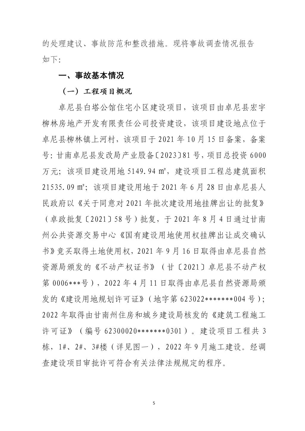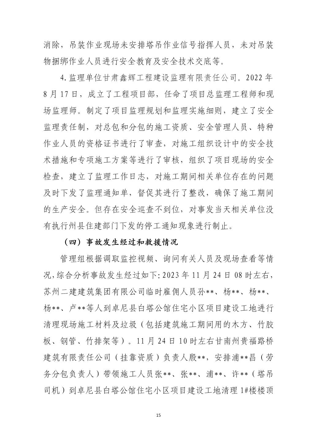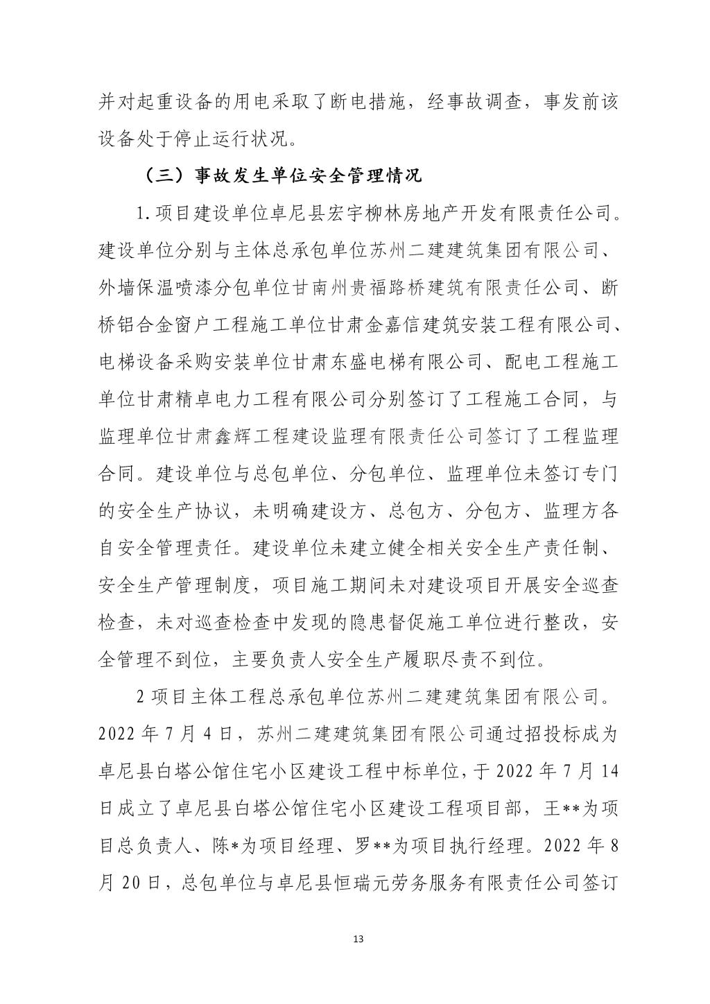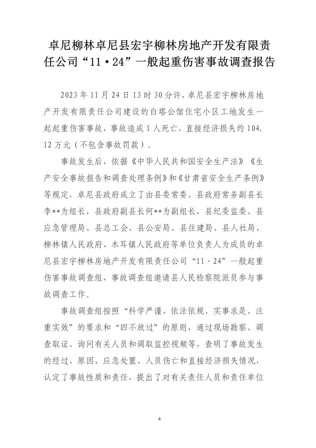 卓尼柳林卓尼县宏宇柳林房地产开发有限责任公司“11·24”一般起重伤害事故调查报告