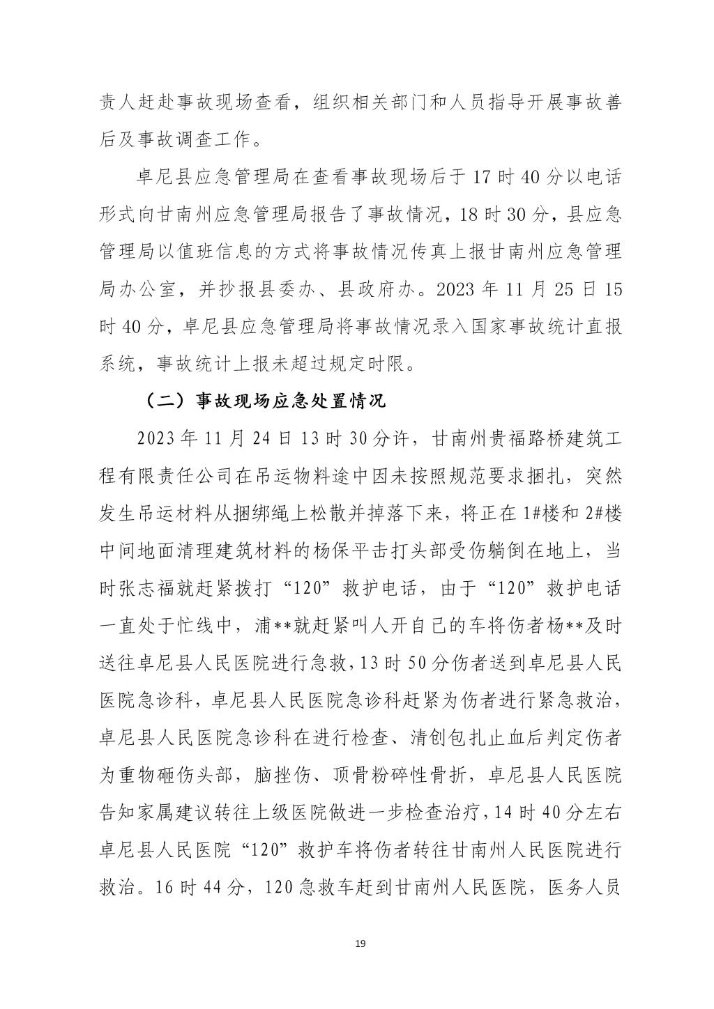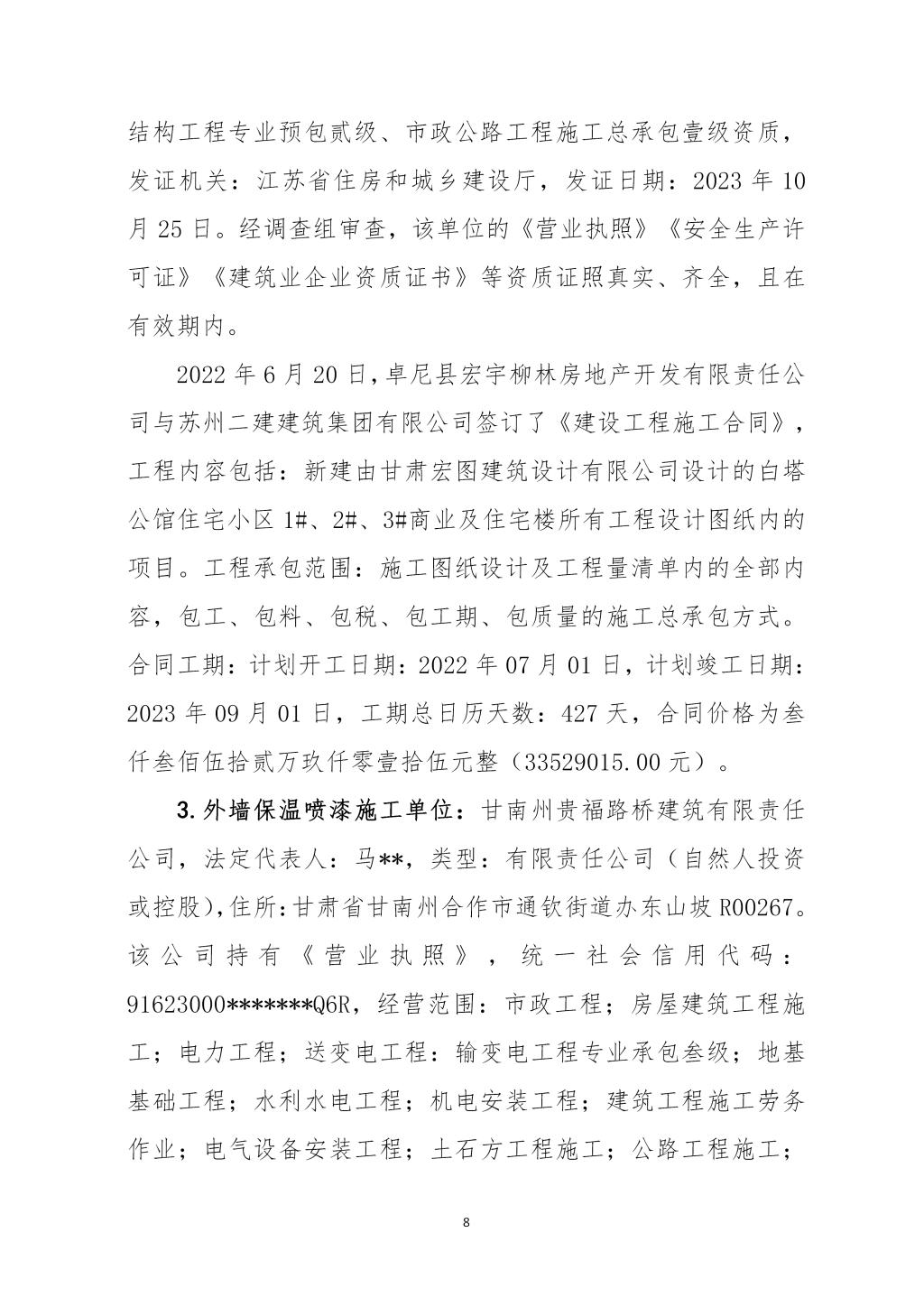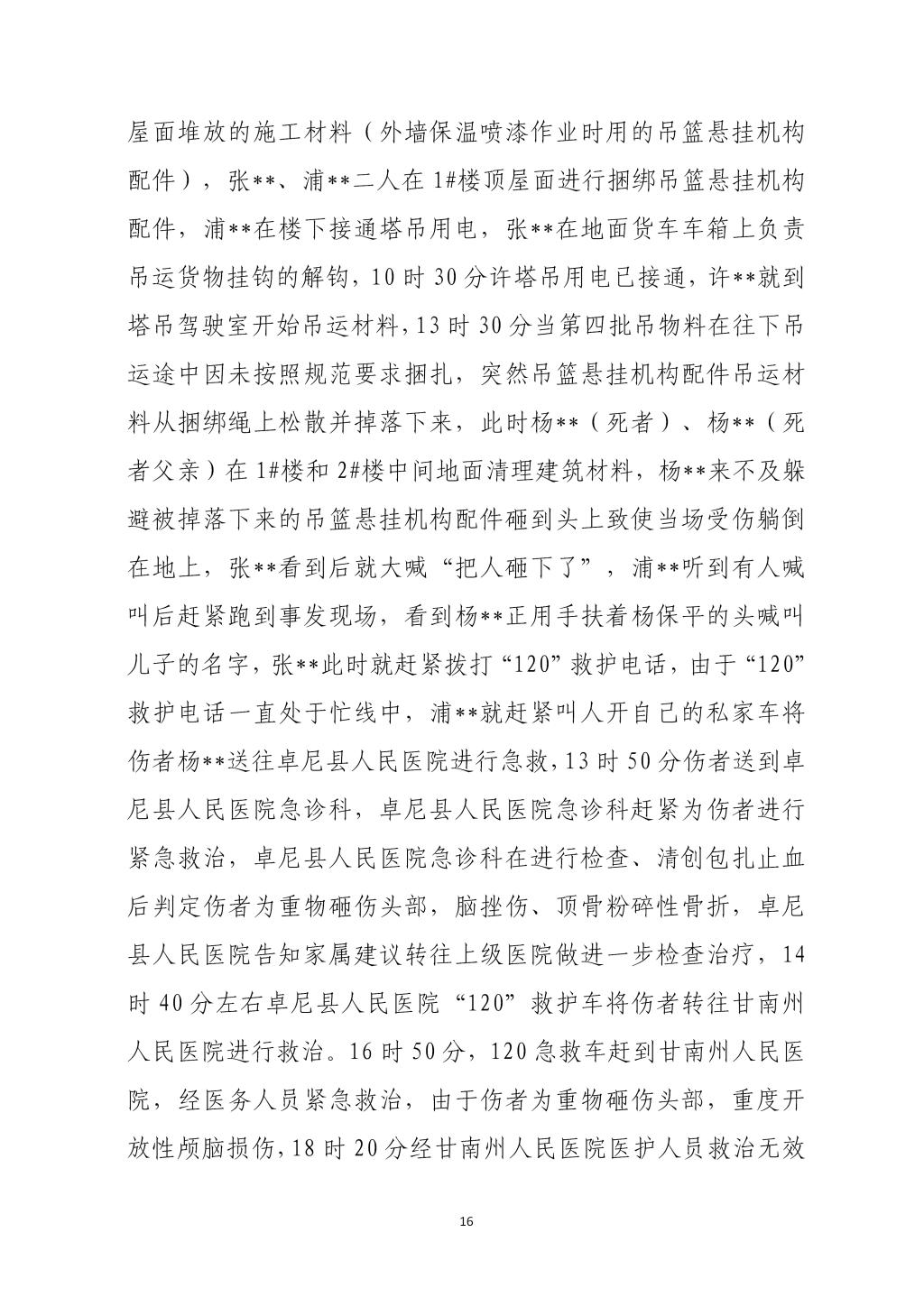 卓尼柳林卓尼县宏宇柳林房地产开发有限责任公司“11·24”一般起重伤害事故调查报告