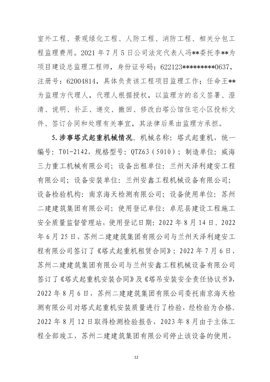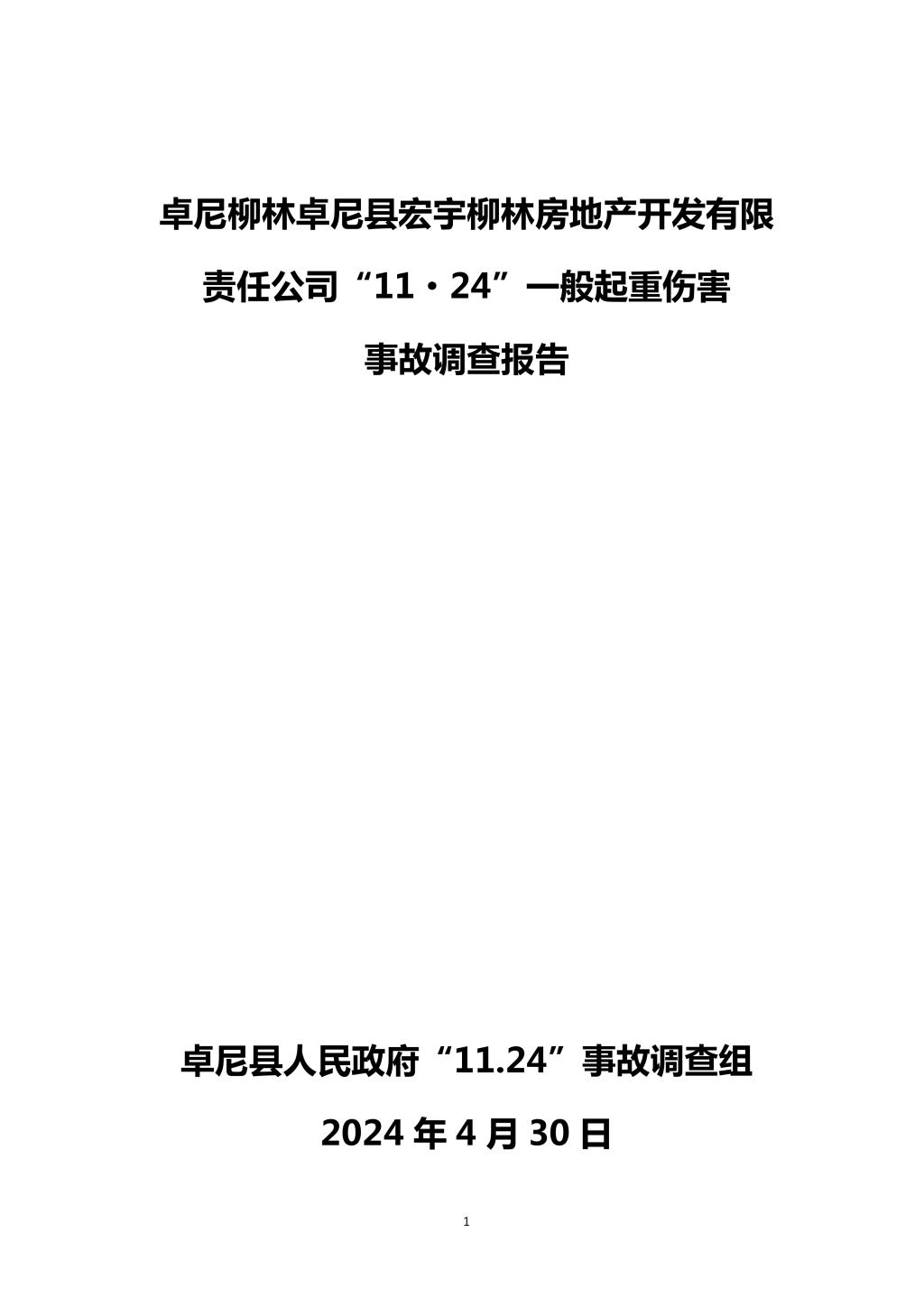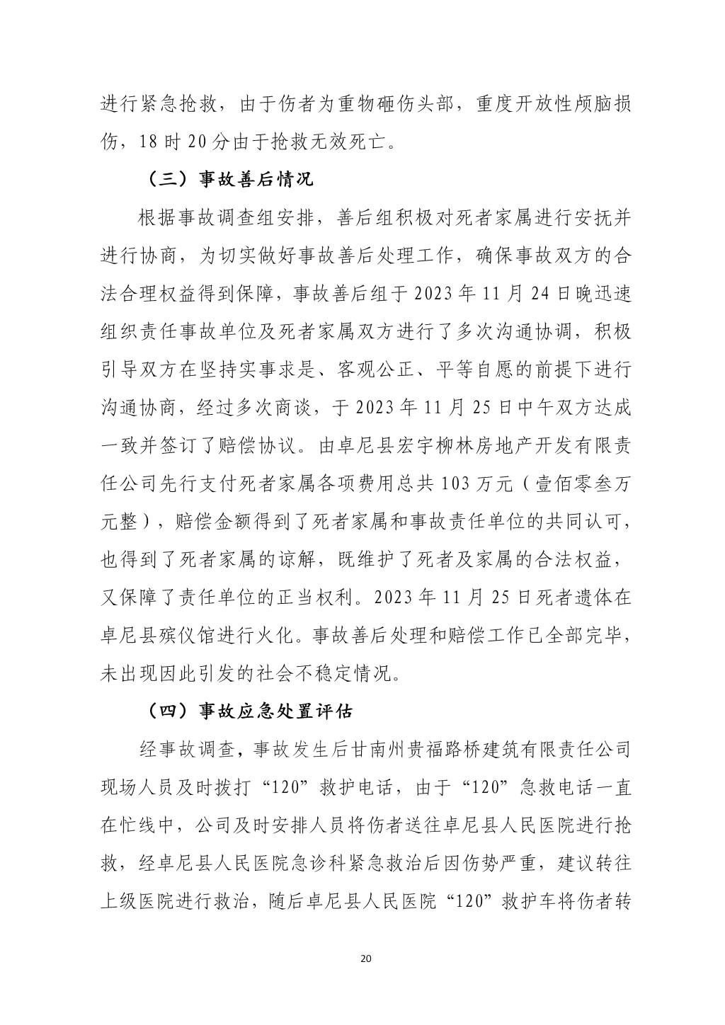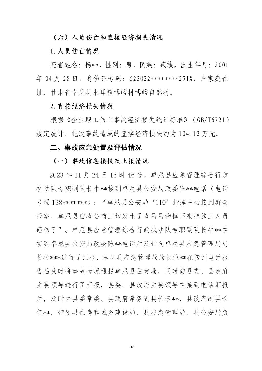 卓尼柳林卓尼县宏宇柳林房地产开发有限责任公司“11·24”一般起重伤害事故调查报告