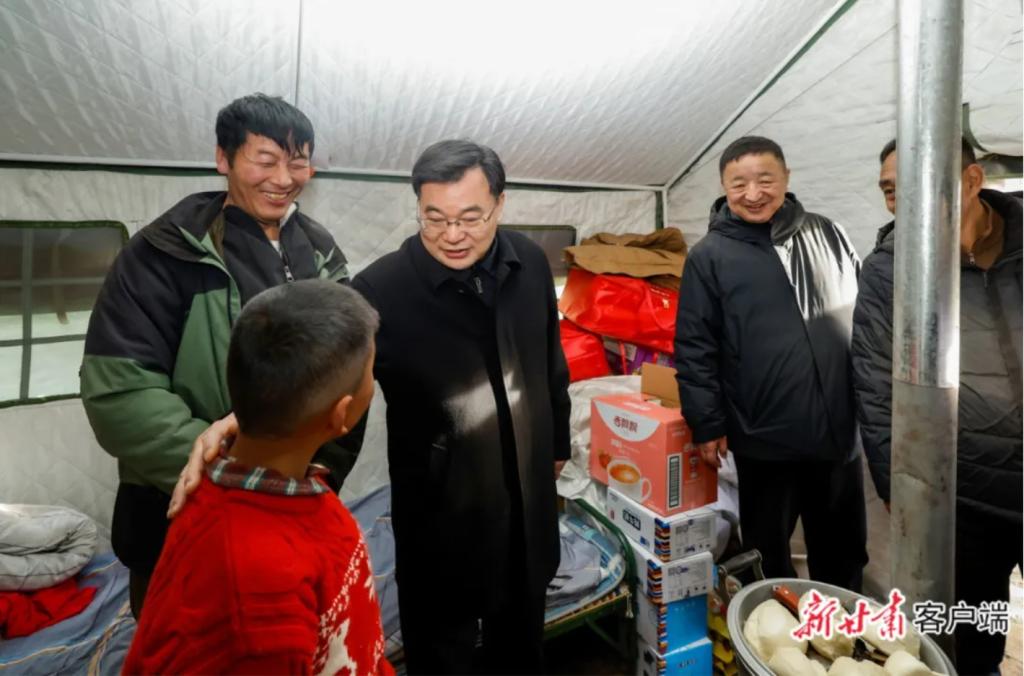 1月27日,省委书记、省人大常委会主任胡昌升赶赴迭部县地震灾区,实地调研指导抗震救灾工作,看望慰问避险安置群众。(新甘肃·甘肃日报记者孟捷)